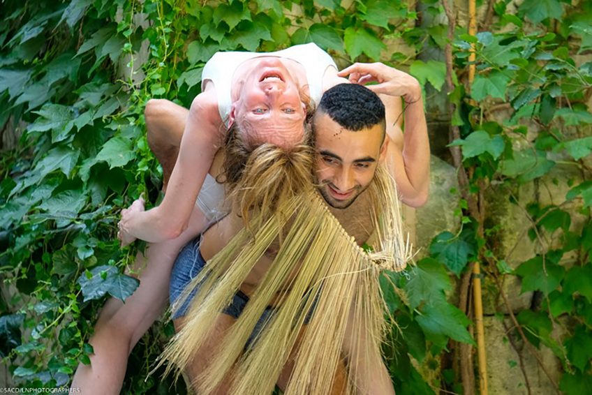 La matinée commence par Ils de jettent dans des endroits où on ne peut les trouver où l’on rêve que les comédiens de Pascal Rambert demandent des cours de bégaiement à Marie Payen puisqu’elle interprète une personne qui déclame son texte à la Pierre Repp (regardez sur le net si vous ne connaissez pas !) : il faudra qu’on se parle de repères… il faut qu’on se pose… il va falloir qu’on se parle… pendant que Mehdi-Georges Lahlou « plante » littéralement le décor de fétus de paille avant de danser sur « chéri je t’aime chéri je t’adore »… La relation entre les deux univers tombe bien. Marie Payen semble se laisser guider par Mehdi-Georges Lahlou qui ne recule devant aucun porté, aucune action dérangeante, la mettant sans cesse a sa merci, tantôt Madone à l’enfant, tantôt conteuse au bord d’une chaise qu’il se plaît à déplacer sans lui demander son avis ! Elle entonne des tubes de Bjork, ils se confient qu’ils aiment « les silences après le rire ». Ils sont complices. Ils sont bien ensemble et nous le sentons. Une belle découverte de deux artistes dont on ne soupçonnait pas le potentiel.