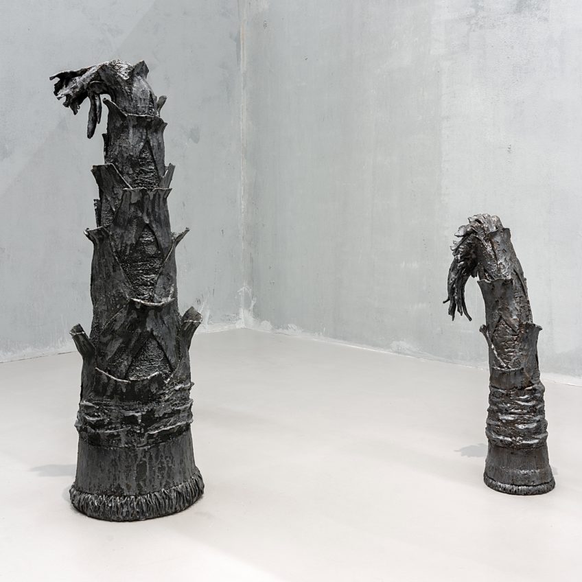 The palm tree is one of the oldest plant species and is adaptable to a wide range of climates. The installation La Conférence des Palmiers is made up of a series of ceramic sculptures of dead palm trees. The title refers to La Conférence des oiseaux, a Persian poem written by Farid al-Din Attär in 1177. Like migratory birds, the palm trees in this piece suggest displacement, imported exoticism, the “something extra” that has settled in our countries over the years.